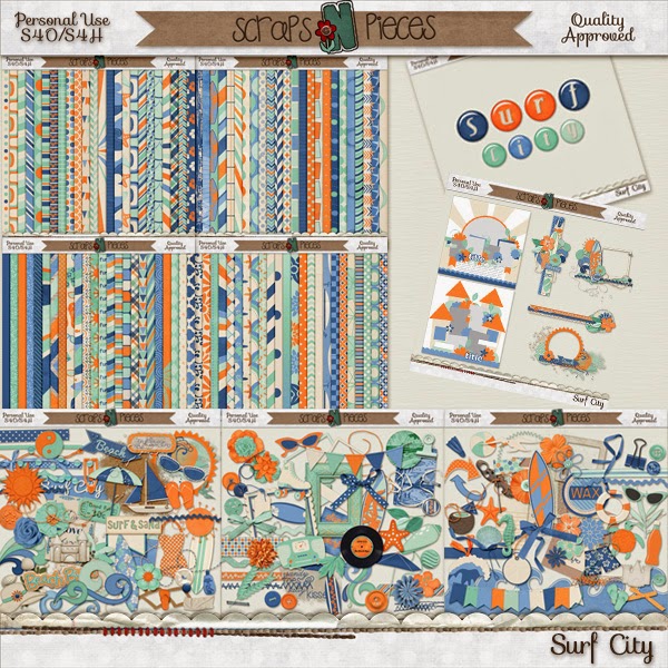 You are going to LOVE the color combinations here and the amazing elements of Surf City. You can earn points in the Collab forum challenge, so snatch this one up for some cool layouts...dude.